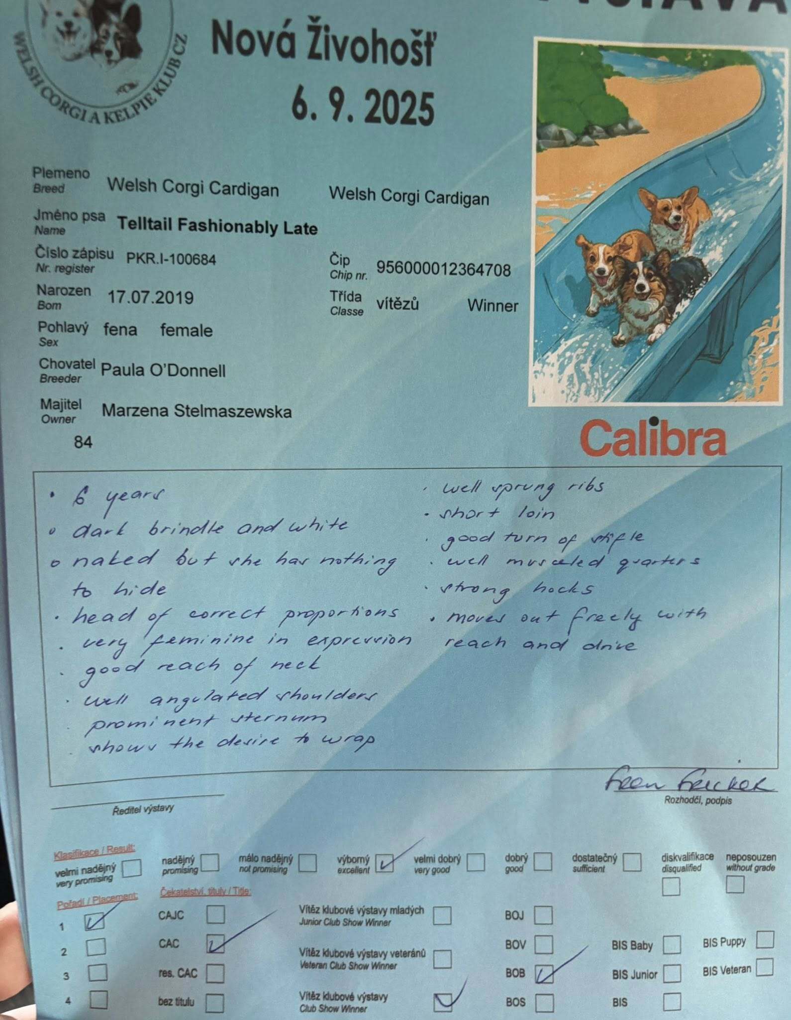 Telltail Fashionalby Late - exc, 4/7, CWC in champion class , 4th place in the nomination for the best head of all cardigans
