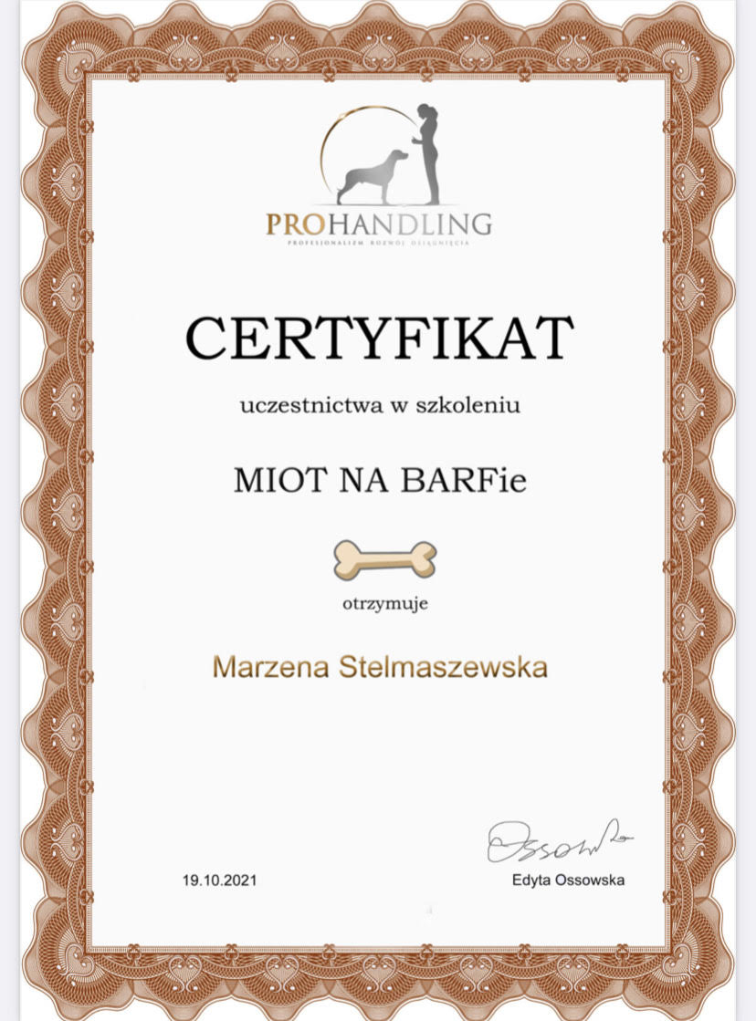 Zawsze doradzam w komponowaniu diety i suplementacji oraz odpowiadam na wszystkie pytania dotyczące żywienia szczeniaka.